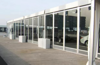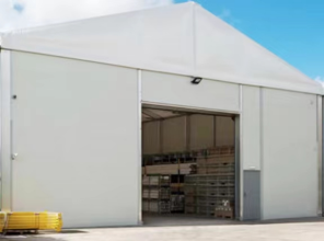 Murs : Tissu PVC blanc très résistant 650 g/m², semi-occultant, 100 % imperméable, ignifuge (DIN4012 B1, M2), résistant aux UV.
